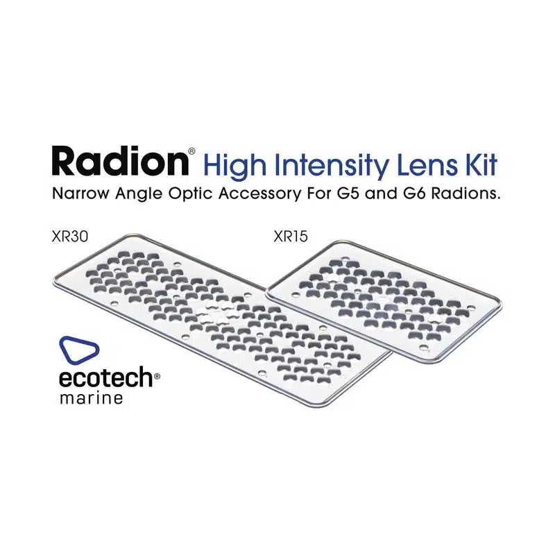 Le kit EcoTech Radion High Intensity est un accessoire précieux conçu pour modifier le rendement lumineux et la mise au point de votre luminaire LED Radion. Ce kit comprend une lentille unique qui rétrécit l’angle de sortie de votre Radion XR15 ou XR 30, offrant un PAR (intensité) plus élevé dans une zone de couverture totale réduite (étendue).