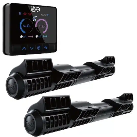 Le pack complet Gyre 350 Cloud Edition Double inclut tout le nécessaire pour une installation professionnelle immédiate : deux pompes Gyre 350, contrôleur Cloud WiFi, aimants renforcés de fixation, accessoires de montage et câblage. L’installation ne requiert aucune modification structurelle de l’aquarium grâce au système magnétique ultra-puissant permettant fixation sur vitres jusqu’à 22mm d’épaisseur.